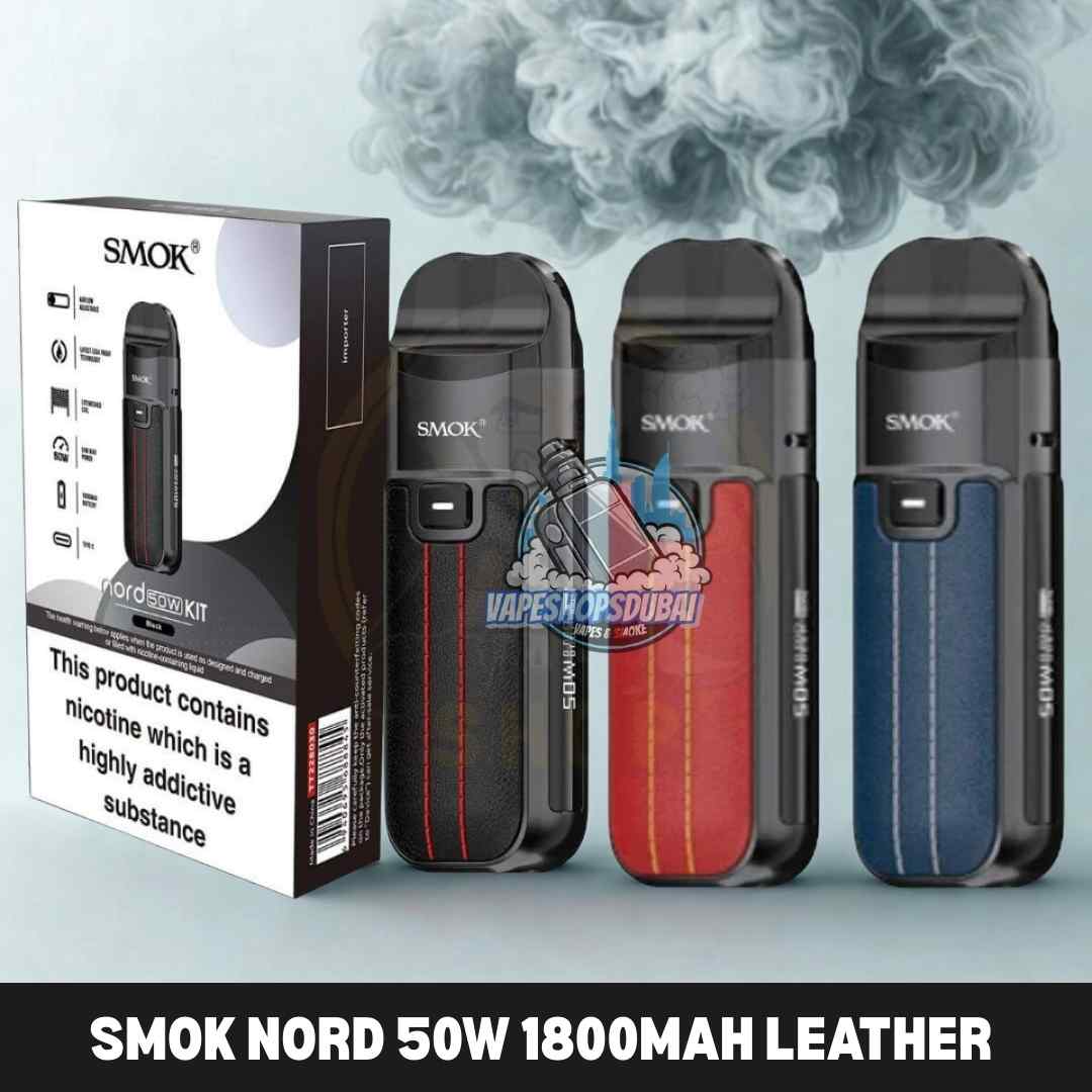 The SMOK Nord 50w 1800mAh Leather Series Pod System is a compact yet powerful pod kit designed for vapers in Dubai and across the UAE. Featuring a 5–50W adjustable output and a built-in 1800mAh battery, it delivers excellent flavor and vapor production throughout the day.
