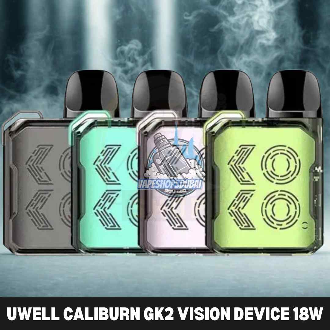 The Uwell Caliburn GK2 Vision is a perfect choice for vapers looking for a compact, stylish, and high-performance pod system. Its compatibility with both G and G2 coils ensures excellent flavor and vapor production for mouth-to-lung (MTL) and restricted direct-lung (RDL) vaping. The built-in 690mAh battery with an 18W output provides consistent power while keeping the device lightweight and portable. With a draw-activated system, LED indicators, and haptic feedback, the GK2 Vision is intuitive and effortless to use. The durable aluminum alloy body with a squared ergonomic design gives it a premium look and feel. Its 2ml refillable pods with a side-fill system make refilling easy and mess-free. Available in six limpid translucent colors, this pod system combines style, performance, and convenience, backed by CE, FCC, ROHS certifications and ESMA approval for safe and reliable vaping across Dubai and the UAE.